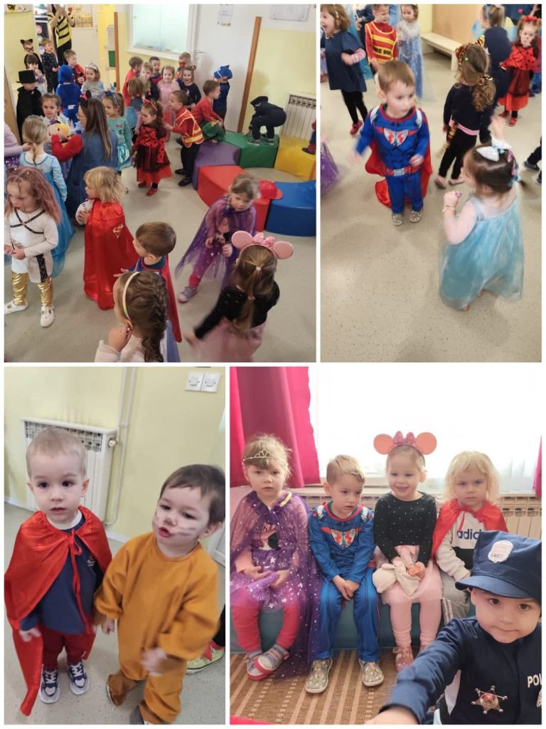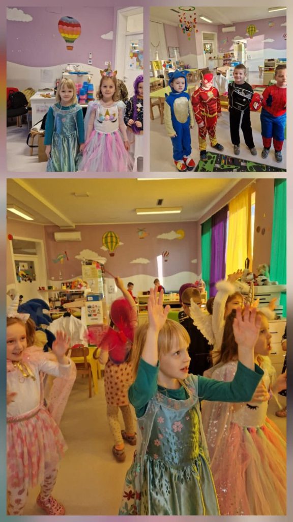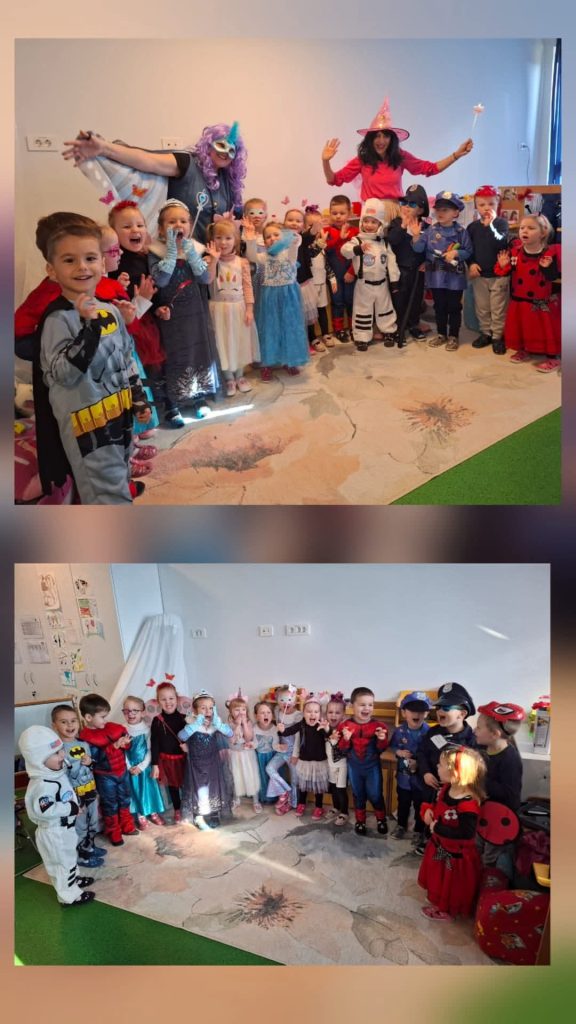 Djeca i djelatnici pretvorili su se u princeze, superjunake, životinje, vatrogasce i još mnoštvo kreativnih likova. Održali smo pravi ples pod maskama, uz pjesmu, smijeh i veselu atmosferu koja je ispunila svaki kutak vrtića. 💃🕺