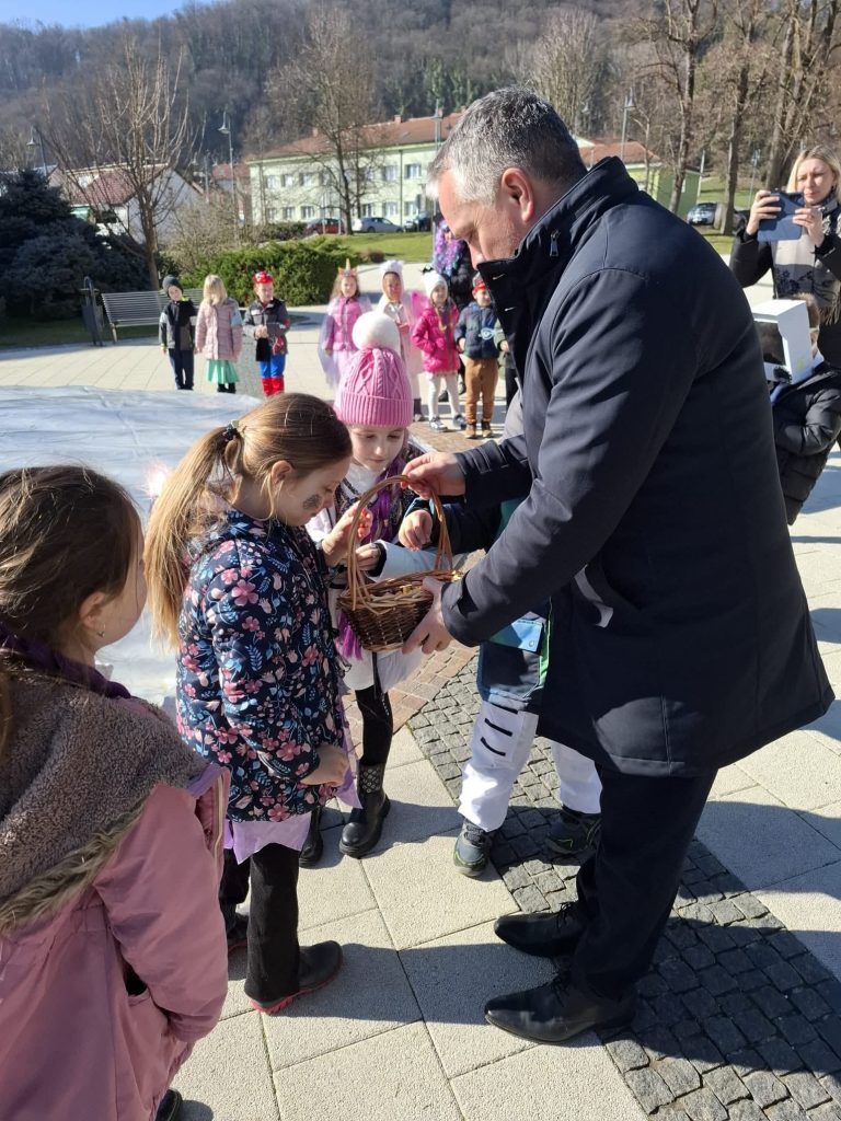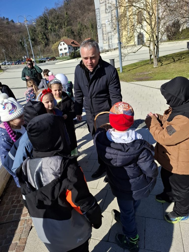 Djeca i odgojiteljice iz “Loptica” i “Zvjezdica” prošetali su do gradskog trga, gdje ih je srdačno dočekao gradonačelnik Goran Vukmanić, koji ih je razveselio slatkim iznenađenjem i podijelio bombone, na čemu mu zahvaljujemo! 🍬