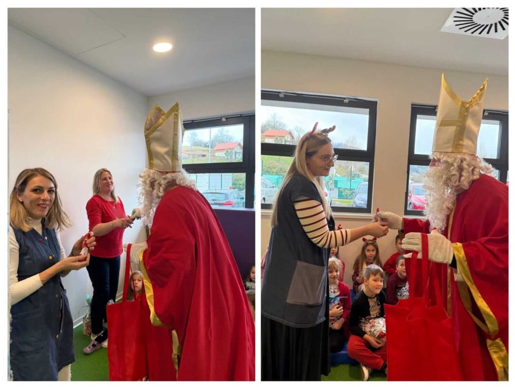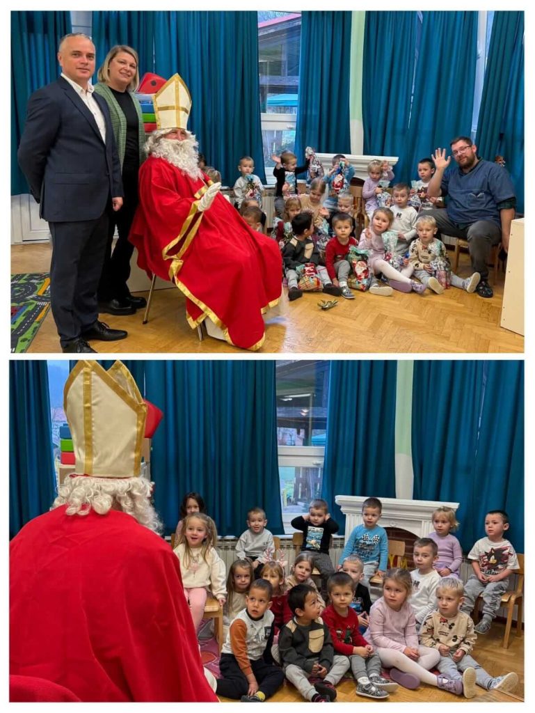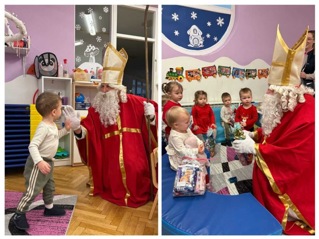 U petak 5.prosinca je naš vrtić ispunila prava blagdanska čarolija! Djeca su s veseljem dočekala svetog Nikolu, koji je stigao s punom vrećom poklona i toplim osmijehom. Uz Svetog Nikolu, posjetio nas je i gradonačelnik Goran Vukmanić.